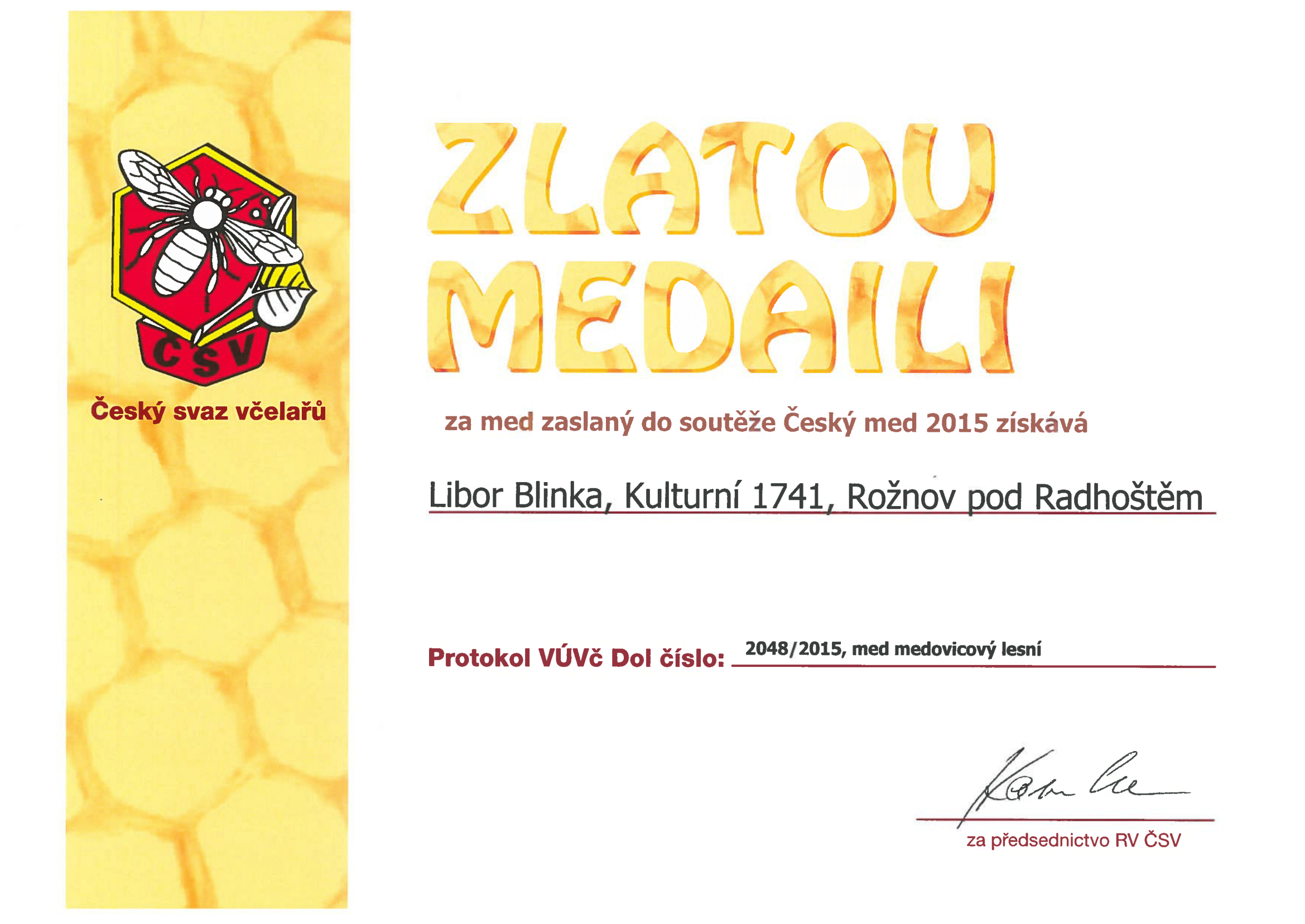 - Zlatá medaile 2015